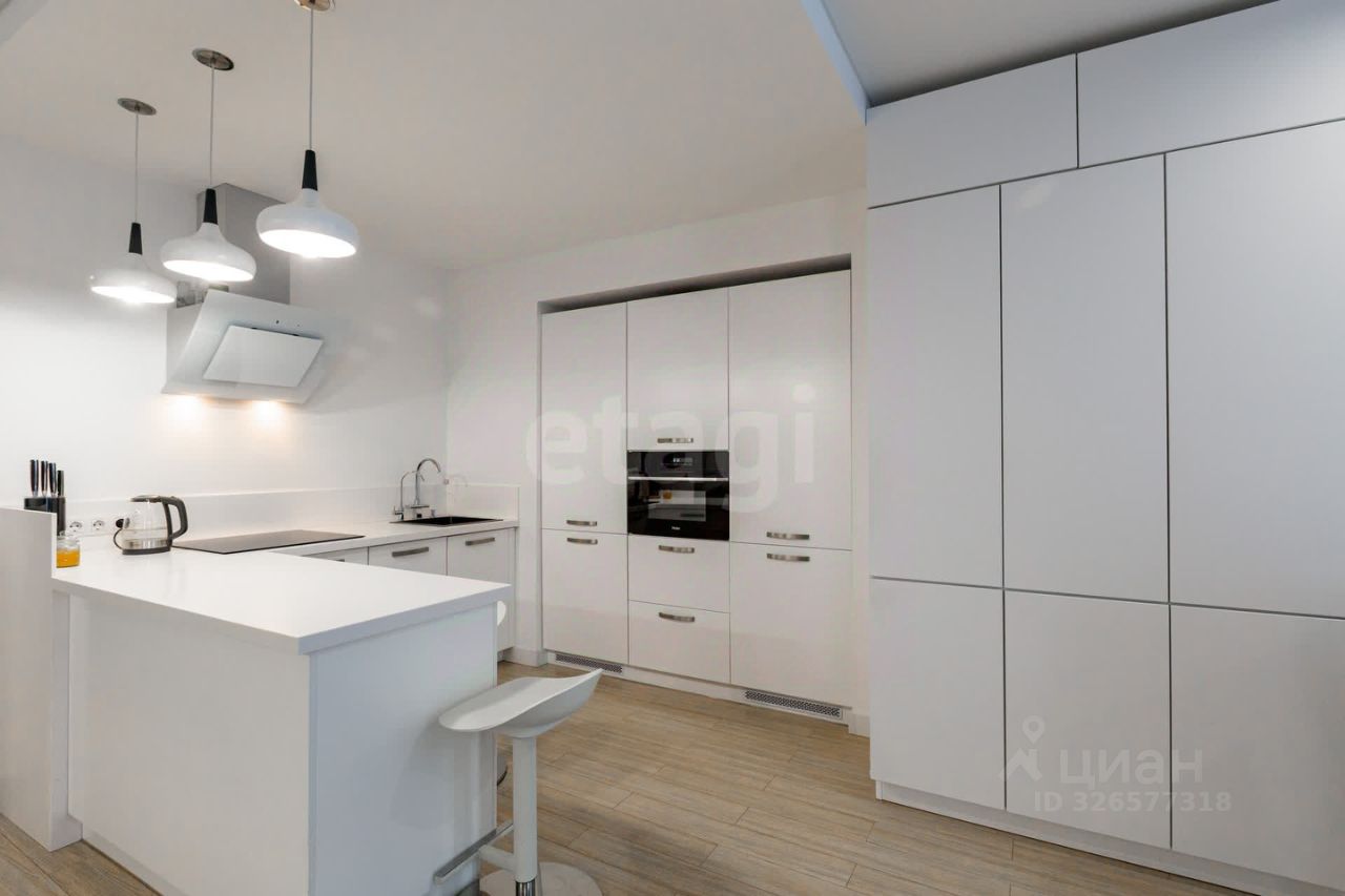 В стоимость входит практичная встроенная мебель, кухонный гарнитур, а также система хранения в гардеробной и детской комнате.