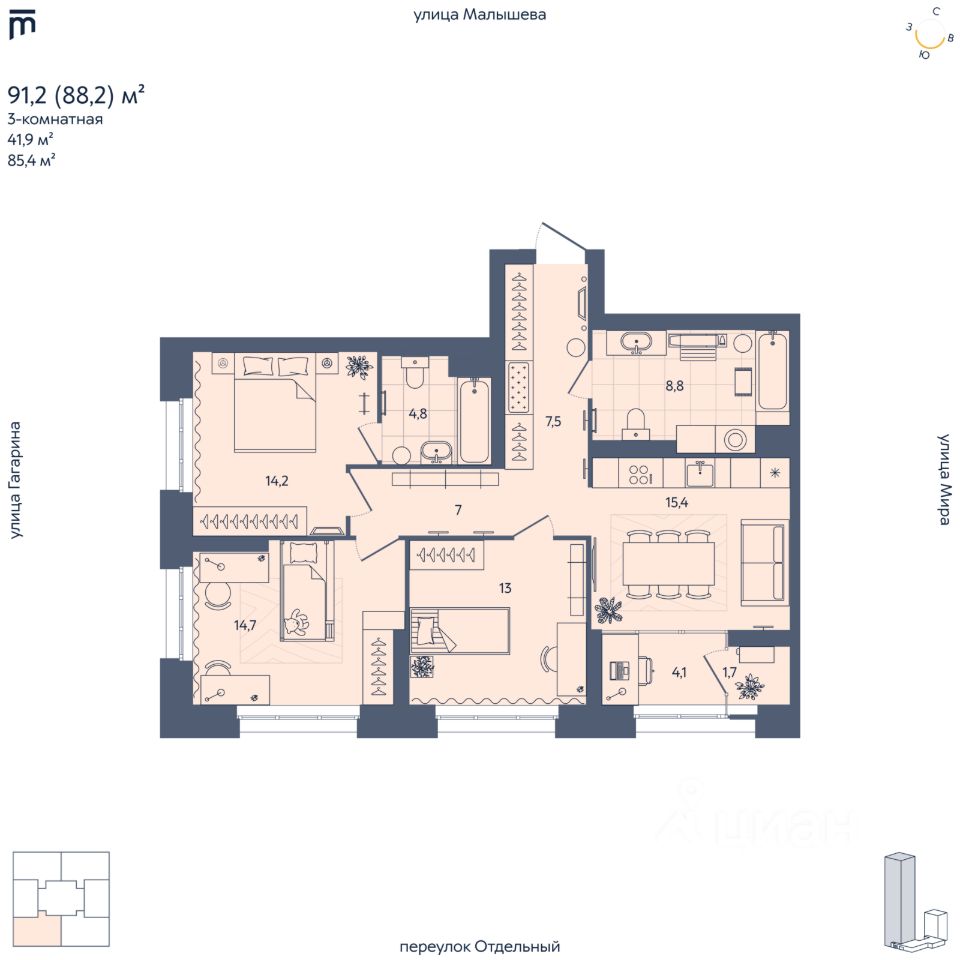 Общая площадь88,2 м²