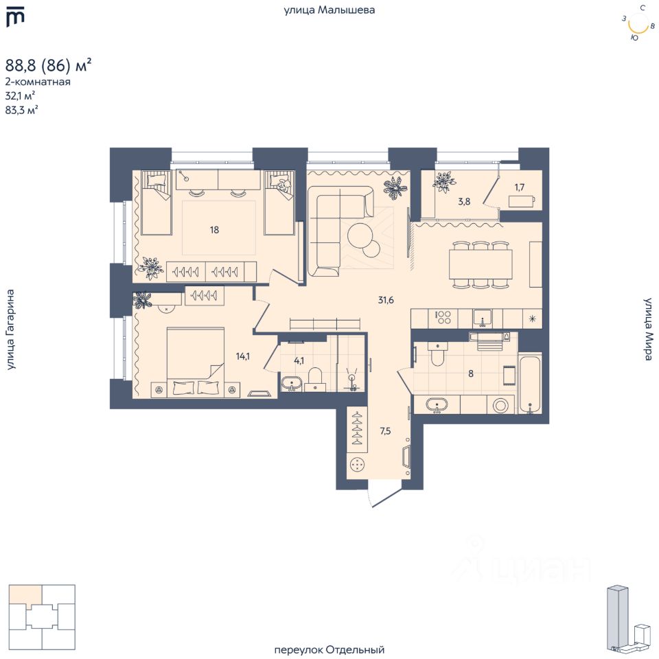 Жилой комплекс бизнес-класса "Отдельный, 5" рядом с УРФУ. Новый жилой комплекс бизнес-класса в Кировском районе Екатеринбурга (Втузгородок), расположенный в тихом квартале между улицами Малышева, Мира и Гагарина. Архитектурный ансамбль состоит из двух секций высотой 29 и 8 этажей, объединенных стилобатом с коммерческими помещениями и семейным кафе. Комплекс создан для комфортной и приватной жизни людей, ценящих простор, безопасность и современный уровень сервиса. Преимущества ЖК "Отдельный, 5" 1. Просторные и комфортные планировки бизнес-класса Минимальная площадь квартир начинается от 58 м². Предусмотрены варианты с просторными кухнями-гостиными, мастер-спальнями, кабинетами и функцинальными ванными. Теплая лоджия в каждой квартире. Места для колясок и велосипедов на этажах, а на -1 уровне — 69 кладовых помещений. В комплексе нет студий — только квартиры, созданные для жизни, а не для сдачи в аренду. 2. Двор без машин и с продуманным благоустройством Два уровня дворового пространства: на первом уровне — игровые зоны для детей 312 лет: горки, качели, дорожки для самокатов, скалодром, песочница. На стилобате — теплица-оранжерея, зоны для пикников, места для отдыха и уединения, шезлонги. Двор закрытый и безопасный, с контролем доступа для жителей. 3. Потолки 3 метра — пространство и свет. Во всех квартирах предусмотрены потолки 3 метра. Это создаёт ощущение свободы, улучшает естественное освещение и циркуляцию воздуха. 4. Комфортный и быстрый доступ к паркингу В доме 5 лифтов, из которых 4 спускаются прямо в подземный паркинг. Каждый лифт рассчитан на груз до 1000 кг — удобно для семей с детьми и покупками. 5. Обеспеченность машиноместами В комплексе предусмотрено 163 одиночных и 24 семейных машиномест (вмещает до 211 автомобилей) и 10 мотомест на 188 резиденций. Инфраструктура для электромобилей: предусмотрены 10 машиномест с возможностью установить собственную зарядку на 380В — питание подведено. Машиноместа доступны к покупке для всех жителей вне зависимости от площади квартиры. 6. Квартиры сдаются с отделкой под чистовую (выполнены все "грязные работы"). Что в нее входит: Оштукатурены стены. Возведены межкомнатные перегородки. Готовы стяжка пола и гидроизоляция пола в санузлах. Установлены радиаторы отопления. Разведены трубы в санузлах. Потолок — бетонная плита перекрытия. Предусмотрена дополнительная звукоизоляция межэтажных перекрытий: используется звукоизолирующий материал Пенотерм НПП ЛЭ (10 мм) с заведением на стену для примыкания стяжки. Поглощает ударный и звуковой шум. Локация и транспортная доступность ЖК "Отдельный, 5" находится во Втузгородке (Кировский район Екатеринбурга). Рядом — улица Малышева и проспект Ленина, но в доме сохраняется тишина даже с открытыми окнами. Удобный выезд в любую часть города. В шаговой доступности — учебные заведения, магазины, скверы, медицинские и спортивные центры. Запись на персональную консультацию, просмотр и бронирование квартир по телефону, звоните!