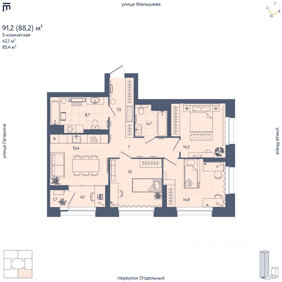 Жилой комплекс бизнес-класса "Отдельный, 5" рядом с УРФУ. Новый жилой комплекс бизнес-класса в Кировском районе Екатеринбурга (Втузгородок), расположенный в тихом квартале между улицами Малышева, Мира и Гагарина. Архитектурный ансамбль состоит из двух секций высотой 29 и 8 этажей, объединенных стилобатом с коммерческими помещениями и семейным кафе. Комплекс создан для комфортной и приватной жизни людей, ценящих простор, безопасность и современный уровень сервиса. Преимущества ЖК "Отдельный, 5" 1. Просторные и комфортные планировки бизнес-класса Минимальная площадь квартир начинается от 58 м². Предусмотрены варианты с просторными кухнями-гостиными, мастер-спальнями, кабинетами и функцинальными ванными. Теплая лоджия в каждой квартире. Места для колясок и велосипедов на этажах, а на -1 уровне — 69 кладовых помещений. В комплексе нет студий — только квартиры, созданные для жизни, а не для сдачи в аренду. 2. Двор без машин и с продуманным благоустройством Два уровня дворового пространства: на первом уровне — игровые зоны для детей 312 лет: горки, качели, дорожки для самокатов, скалодром, песочница. На стилобате — теплица-оранжерея, зоны для пикников, места для отдыха и уединения, шезлонги. Двор закрытый и безопасный, с контролем доступа для жителей. 3. Потолки 3 метра — пространство и свет. Во всех квартирах предусмотрены потолки 3 метра. Это создаёт ощущение свободы, улучшает естественное освещение и циркуляцию воздуха. 4. Комфортный и быстрый доступ к паркингу В доме 5 лифтов, из которых 4 спускаются прямо в подземный паркинг. Каждый лифт рассчитан на груз до 1000 кг — удобно для семей с детьми и покупками. 5. Обеспеченность машиноместами В комплексе предусмотрено 163 одиночных и 24 семейных машиномест (вмещает до 211 автомобилей) и 10 мотомест на 188 резиденций. Инфраструктура для электромобилей: предусмотрены 10 машиномест с возможностью установить собственную зарядку на 380В — питание подведено. Машиноместа доступны к покупке для всех жителей вне зависимости от площади квартиры. 6. Квартиры сдаются с отделкой под чистовую (выполнены все "грязные работы"). Что в нее входит: Оштукатурены стены. Возведены межкомнатные перегородки. Готовы стяжка пола и гидроизоляция пола в санузлах. Установлены радиаторы отопления. Разведены трубы в санузлах. Потолок — бетонная плита перекрытия. Предусмотрена дополнительная звукоизоляция межэтажных перекрытий: используется звукоизолирующий материал Пенотерм НПП ЛЭ (10 мм) с заведением на стену для примыкания стяжки. Поглощает ударный и звуковой шум. Локация и транспортная доступность ЖК "Отдельный, 5" находится во Втузгородке (Кировский район Екатеринбурга). Рядом — улица Малышева и проспект Ленина, но в доме сохраняется тишина даже с открытыми окнами. Удобный выезд в любую часть города. В шаговой доступности — учебные заведения, магазины, скверы, медицинские и спортивные центры. Запись на персональную консультацию, просмотр и бронирование квартир по телефону, звоните!
