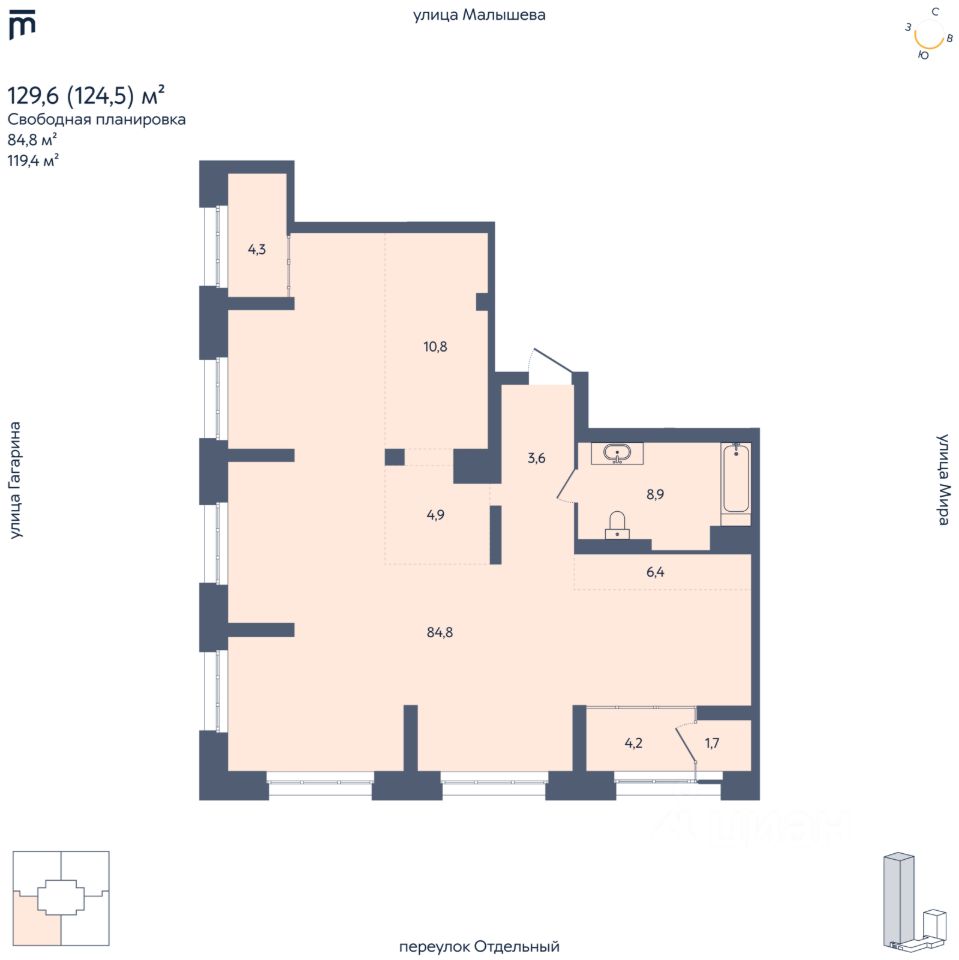 Жилая площадь84,8 м²