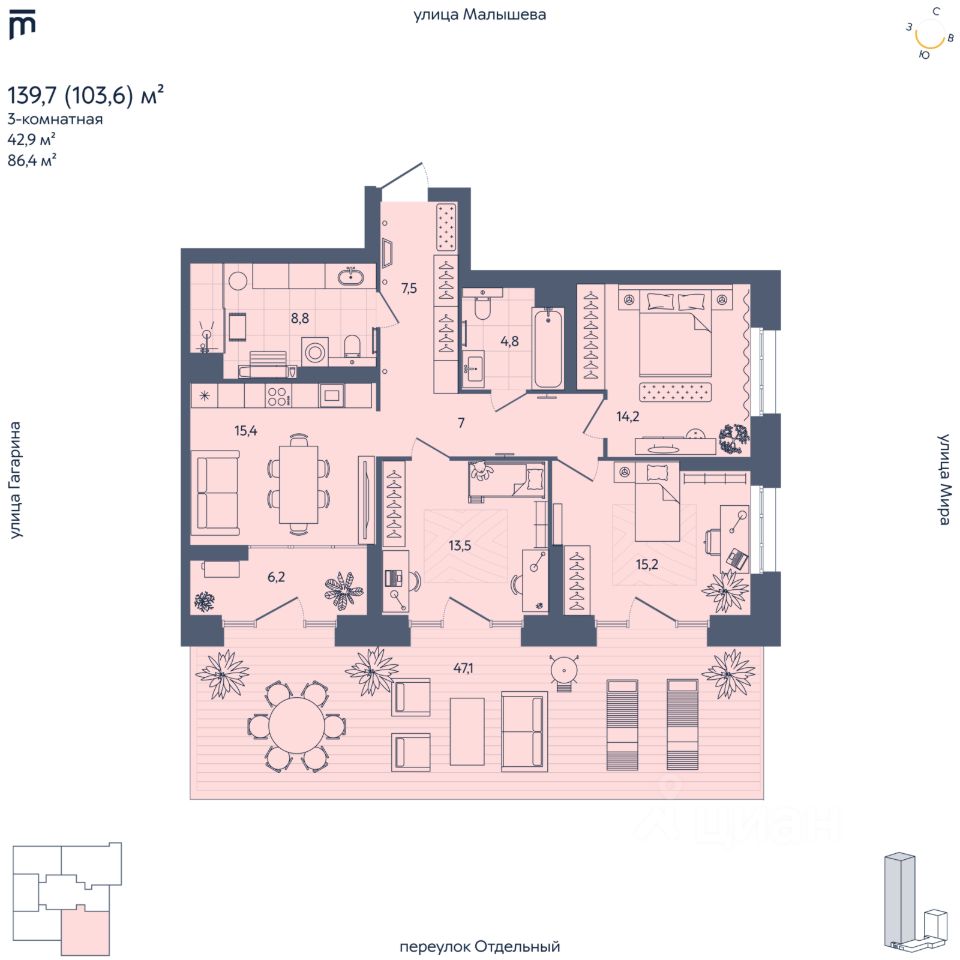 Жилой комплекс бизнес-класса "Отдельный, 5" рядом с УРФУ. Новый жилой комплекс бизнес-класса в Кировском районе Екатеринбурга (Втузгородок), расположенный в тихом квартале между улицами Малышева, Мира и Гагарина. Архитектурный ансамбль состоит из двух секций высотой 29 и 8 этажей, объединенных стилобатом с коммерческими помещениями и семейным кафе. Комплекс создан для комфортной и приватной жизни людей, ценящих простор, безопасность и современный уровень сервиса. Преимущества ЖК "Отдельный, 5" 1. Просторные и комфортные планировки бизнес-класса Минимальная площадь квартир начинается от 58 м². Предусмотрены варианты с просторными кухнями-гостиными, мастер-спальнями, кабинетами и функцинальными ванными. Теплая лоджия в каждой квартире. Места для колясок и велосипедов на этажах, а на -1 уровне — 69 кладовых помещений. В комплексе нет студий — только квартиры, созданные для жизни, а не для сдачи в аренду. 2. Двор без машин и с продуманным благоустройством Два уровня дворового пространства: на первом уровне — игровые зоны для детей 312 лет: горки, качели, дорожки для самокатов, скалодром, песочница. На стилобате — теплица-оранжерея, зоны для пикников, места для отдыха и уединения, шезлонги. Двор закрытый и безопасный, с контролем доступа для жителей. 3. Потолки 3 метра — пространство и свет. Во всех квартирах предусмотрены потолки 3 метра. Это создаёт ощущение свободы, улучшает естественное освещение и циркуляцию воздуха. 4. Комфортный и быстрый доступ к паркингу В доме 5 лифтов, из которых 4 спускаются прямо в подземный паркинг. Каждый лифт рассчитан на груз до 1000 кг — удобно для семей с детьми и покупками. 5. Обеспеченность машиноместами В комплексе предусмотрено 163 одиночных и 24 семейных машиномест (вмещает до 211 автомобилей) и 10 мотомест на 188 резиденций. Инфраструктура для электромобилей: предусмотрены 10 машиномест с возможностью установить собственную зарядку на 380В — питание подведено. Машиноместа доступны к покупке для всех жителей вне зависимости от площади квартиры. 6. Квартиры сдаются с отделкой под чистовую (выполнены все "грязные работы"). Что в нее входит: Оштукатурены стены. Возведены межкомнатные перегородки. Готовы стяжка пола и гидроизоляция пола в санузлах. Установлены радиаторы отопления. Разведены трубы в санузлах. Потолок — бетонная плита перекрытия. Предусмотрена дополнительная звукоизоляция межэтажных перекрытий: используется звукоизолирующий материал Пенотерм НПП ЛЭ (10 мм) с заведением на стену для примыкания стяжки. Поглощает ударный и звуковой шум. Локация и транспортная доступность ЖК "Отдельный, 5" находится во Втузгородке (Кировский район Екатеринбурга). Рядом — улица Малышева и проспект Ленина, но в доме сохраняется тишина даже с открытыми окнами. Удобный выезд в любую часть города. В шаговой доступности — учебные заведения, магазины, скверы, медицинские и спортивные центры. Запись на персональную консультацию, просмотр и бронирование квартир по телефону, звоните!