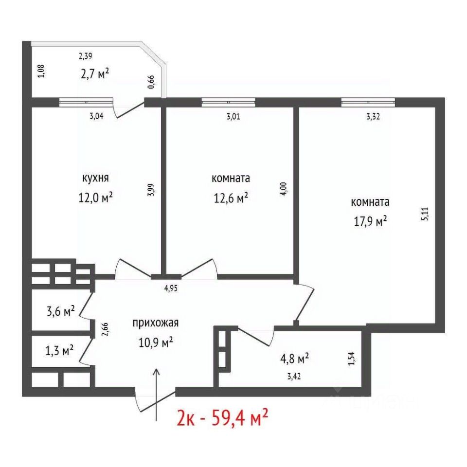 В квартире два санузла, кладовая, гардеробная и просторная квадратной формы прихожая. Выход на лоджию с кухни .