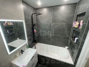 Качественный ремонт включает полностью обновленную сантехнику и керамогранит в санузле.