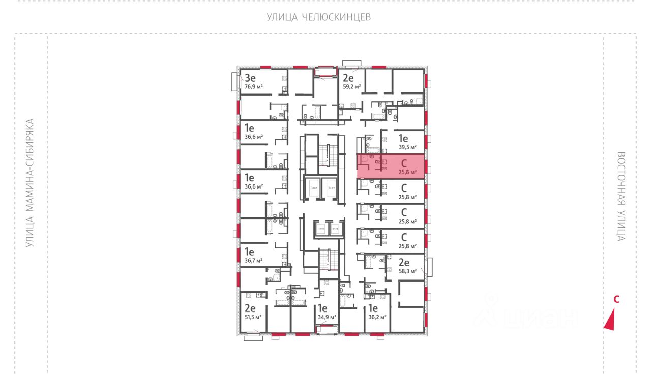 Квартира располагается на 9 этаже 25-этажного дома в ЖК Азина, 16.