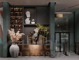 Интерьер вестибюля с кофейней, камином и панорамными видами выполнен в благородных приглушенных тонах с авторским панно из мозаики.
