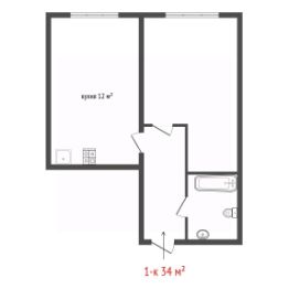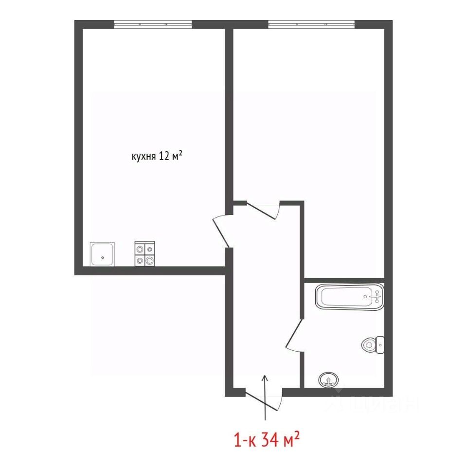 Объект расположен на третьем этаже пятиэтажного дома, общая площадь составляет 34 кв. м.