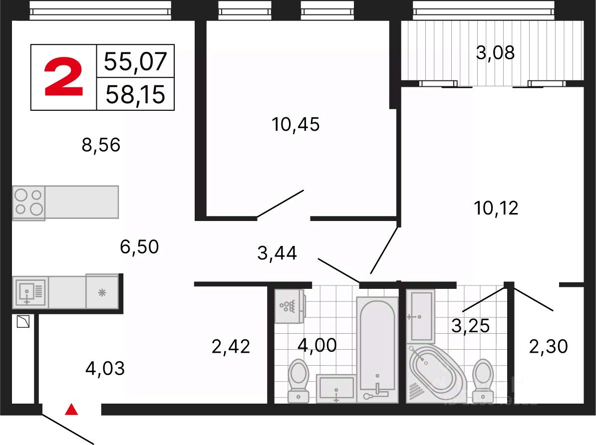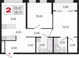 Продается двухкомнатная квартира от застройщика с отделкой в ЖК "ДНК. Дом на Куйбышева" на 12 этаже. Общая площадь: 58.17 кв.м. Высота потолков 2.7 м.
