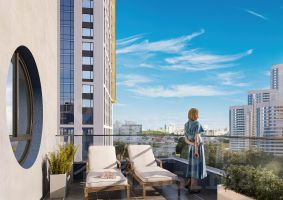 Дом 2 Ввод в эксплуатацию первая половина 2026 г. Класс дома: комфорт. Отделка: чистовая. Архитектурное решение: графитовые композитные панели в сочетании со светлой штукатуркой. Вид из окон: на Верх-Исетский пруд, центр города и лесной массив.