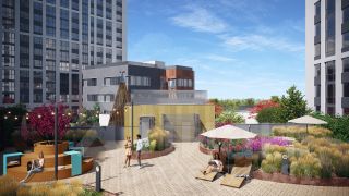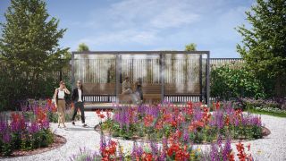 Парк во дворе. Многоуровневое озеленение и система туманообразования.