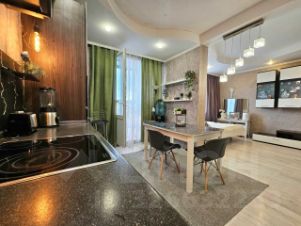 Большая квартира для большой семьи! Ремонт по индивидуальному дизайн-проекту, использованы качественные отделочные материалы. Удачно объединены кухня и жилое пространство. Две отдельные спальни, два санузла. В подарок остаются кухонный гарнитур, варочная поверхность, встроенные шкафы; остальная мебель и предметы интерьера - по согласованию за доп.плату)) Комфортный этаж. Окна на разные стороны. Много света!