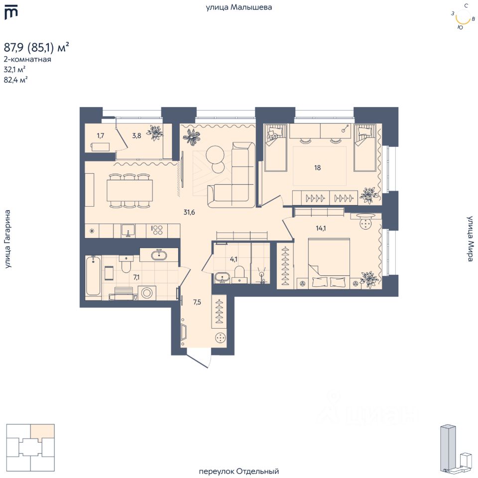 Жилой комплекс бизнес-класса "Отдельный, 5" рядом с УРФУ. Новый жилой комплекс бизнес-класса в Кировском районе Екатеринбурга (Втузгородок), расположенный в тихом квартале между улицами Малышева, Мира и Гагарина. Архитектурный ансамбль состоит из двух секций высотой 29 и 8 этажей, объединенных стилобатом с коммерческими помещениями и семейным кафе. Комплекс создан для комфортной и приватной жизни людей, ценящих простор, безопасность и современный уровень сервиса. Преимущества ЖК "Отдельный, 5" 1. Просторные и комфортные планировки бизнес-класса Минимальная площадь квартир начинается от 58 м². Предусмотрены варианты с просторными кухнями-гостиными, мастер-спальнями, кабинетами и функцинальными ванными. Теплая лоджия в каждой квартире. Места для колясок и велосипедов на этажах, а на -1 уровне — 69 кладовых помещений. В комплексе нет студий — только квартиры, созданные для жизни, а не для сдачи в аренду. 2. Двор без машин и с продуманным благоустройством Два уровня дворового пространства: на первом уровне — игровые зоны для детей 312 лет: горки, качели, дорожки для самокатов, скалодром, песочница. На стилобате — теплица-оранжерея, зоны для пикников, места для отдыха и уединения, шезлонги. Двор закрытый и безопасный, с контролем доступа для жителей. 3. Потолки 3 метра — пространство и свет. Во всех квартирах предусмотрены потолки 3 метра. Это создаёт ощущение свободы, улучшает естественное освещение и циркуляцию воздуха. 4. Комфортный и быстрый доступ к паркингу В доме 5 лифтов, из которых 4 спускаются прямо в подземный паркинг. Каждый лифт рассчитан на груз до 1000 кг — удобно для семей с детьми и покупками. 5. Обеспеченность машиноместами В комплексе предусмотрено 163 одиночных и 24 семейных машиномест (вмещает до 211 автомобилей) и 10 мотомест на 188 резиденций. Инфраструктура для электромобилей: предусмотрены 10 машиномест с возможностью установить собственную зарядку на 380В — питание подведено. Машиноместа доступны к покупке для всех жителей вне зависимости от площади квартиры. 6. Квартиры сдаются с отделкой под чистовую (выполнены все "грязные работы"). Что в нее входит: Оштукатурены стены. Возведены межкомнатные перегородки. Готовы стяжка пола и гидроизоляция пола в санузлах. Установлены радиаторы отопления. Разведены трубы в санузлах. Потолок — бетонная плита перекрытия. Предусмотрена дополнительная звукоизоляция межэтажных перекрытий: используется звукоизолирующий материал Пенотерм НПП ЛЭ (10 мм) с заведением на стену для примыкания стяжки. Поглощает ударный и звуковой шум. Локация и транспортная доступность ЖК "Отдельный, 5" находится во Втузгородке (Кировский район Екатеринбурга). Рядом — улица Малышева и проспект Ленина, но в доме сохраняется тишина даже с открытыми окнами. Удобный выезд в любую часть города. В шаговой доступности — учебные заведения, магазины, скверы, медицинские и спортивные центры. Запись на персональную консультацию, просмотр и бронирование квартир по телефону, звоните!