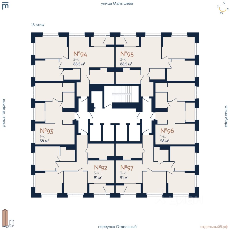 Жилой комплекс бизнес-класса "Отдельный, 5" рядом с УРФУ. Новый жилой комплекс бизнес-класса в Кировском районе Екатеринбурга (Втузгородок), расположенный в тихом квартале между улицами Малышева, Мира и Гагарина. Архитектурный ансамбль состоит из двух секций высотой 29 и 8 этажей, объединенных стилобатом с коммерческими помещениями и семейным кафе. Комплекс создан для комфортной и приватной жизни людей, ценящих простор, безопасность и современный уровень сервиса. Преимущества ЖК "Отдельный, 5" 1. Просторные и комфортные планировки бизнес-класса Минимальная площадь квартир начинается от 58 м². Предусмотрены варианты с просторными кухнями-гостиными, мастер-спальнями, кабинетами и функцинальными ванными. Теплая лоджия в каждой квартире. Места для колясок и велосипедов на этажах, а на -1 уровне — 69 кладовых помещений. В комплексе нет студий — только квартиры, созданные для жизни, а не для сдачи в аренду. 2. Двор без машин и с продуманным благоустройством Два уровня дворового пространства: на первом уровне — игровые зоны для детей 312 лет: горки, качели, дорожки для самокатов, скалодром, песочница. На стилобате — теплица-оранжерея, зоны для пикников, места для отдыха и уединения, шезлонги. Двор закрытый и безопасный, с контролем доступа для жителей. 3. Потолки 3 метра — пространство и свет. Во всех квартирах предусмотрены потолки 3 метра. Это создаёт ощущение свободы, улучшает естественное освещение и циркуляцию воздуха. 4. Комфортный и быстрый доступ к паркингу В доме 5 лифтов, из которых 4 спускаются прямо в подземный паркинг. Каждый лифт рассчитан на груз до 1000 кг — удобно для семей с детьми и покупками. 5. Обеспеченность машиноместами В комплексе предусмотрено 163 одиночных и 24 семейных машиномест (вмещает до 211 автомобилей) и 10 мотомест на 188 резиденций. Инфраструктура для электромобилей: предусмотрены 10 машиномест с возможностью установить собственную зарядку на 380В — питание подведено. Машиноместа доступны к покупке для всех жителей вне зависимости от площади квартиры. 6. Квартиры сдаются с отделкой под чистовую (выполнены все "грязные работы"). Что в нее входит: Оштукатурены стены. Возведены межкомнатные перегородки. Готовы стяжка пола и гидроизоляция пола в санузлах. Установлены радиаторы отопления. Разведены трубы в санузлах. Потолок — бетонная плита перекрытия. Предусмотрена дополнительная звукоизоляция межэтажных перекрытий: используется звукоизолирующий материал Пенотерм НПП ЛЭ (10 мм) с заведением на стену для примыкания стяжки. Поглощает ударный и звуковой шум. Локация и транспортная доступность ЖК "Отдельный, 5" находится во Втузгородке (Кировский район Екатеринбурга). Рядом — улица Малышева и проспект Ленина, но в доме сохраняется тишина даже с открытыми окнами. Удобный выезд в любую часть города. В шаговой доступности — учебные заведения, магазины, скверы, медицинские и спортивные центры. Запись на персональную консультацию, просмотр и бронирование квартир по телефону, звоните!