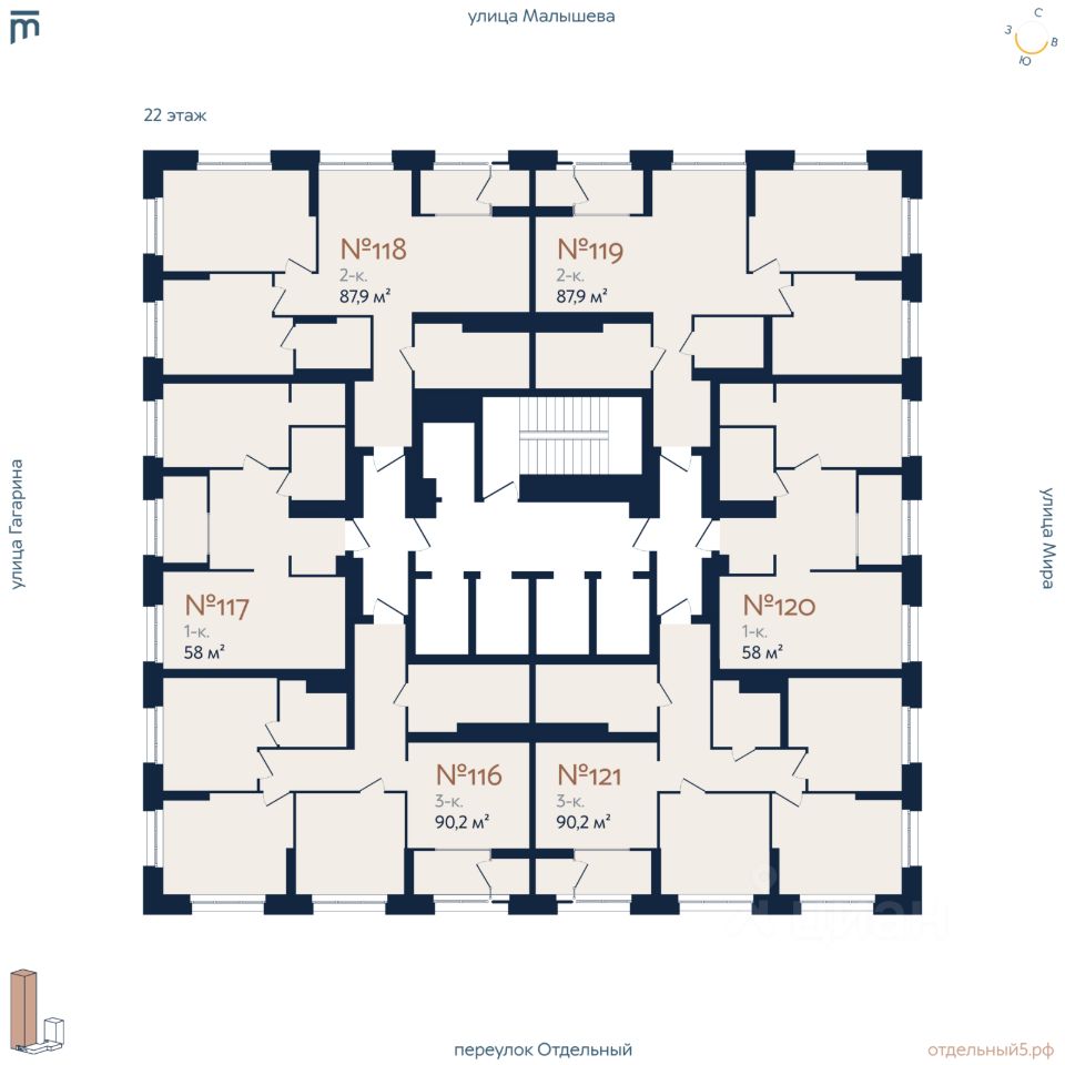 Жилой комплекс бизнес-класса "Отдельный, 5" рядом с УРФУ. Новый жилой комплекс бизнес-класса в Кировском районе Екатеринбурга (Втузгородок), расположенный в тихом квартале между улицами Малышева, Мира и Гагарина. Архитектурный ансамбль состоит из двух секций высотой 29 и 8 этажей, объединенных стилобатом с коммерческими помещениями и семейным кафе. Комплекс создан для комфортной и приватной жизни людей, ценящих простор, безопасность и современный уровень сервиса. Преимущества ЖК "Отдельный, 5" 1. Просторные и комфортные планировки бизнес-класса Минимальная площадь квартир начинается от 58 м². Предусмотрены варианты с просторными кухнями-гостиными, мастер-спальнями, кабинетами и функцинальными ванными. Теплая лоджия в каждой квартире. Места для колясок и велосипедов на этажах, а на -1 уровне — 69 кладовых помещений. В комплексе нет студий — только квартиры, созданные для жизни, а не для сдачи в аренду. 2. Двор без машин и с продуманным благоустройством Два уровня дворового пространства: на первом уровне — игровые зоны для детей 312 лет: горки, качели, дорожки для самокатов, скалодром, песочница. На стилобате — теплица-оранжерея, зоны для пикников, места для отдыха и уединения, шезлонги. Двор закрытый и безопасный, с контролем доступа для жителей. 3. Потолки 3 метра — пространство и свет. Во всех квартирах предусмотрены потолки 3 метра. Это создаёт ощущение свободы, улучшает естественное освещение и циркуляцию воздуха. 4. Комфортный и быстрый доступ к паркингу В доме 5 лифтов, из которых 4 спускаются прямо в подземный паркинг. Каждый лифт рассчитан на груз до 1000 кг — удобно для семей с детьми и покупками. 5. Обеспеченность машиноместами В комплексе предусмотрено 163 одиночных и 24 семейных машиномест (вмещает до 211 автомобилей) и 10 мотомест на 188 резиденций. Инфраструктура для электромобилей: предусмотрены 10 машиномест с возможностью установить собственную зарядку на 380В — питание подведено. Машиноместа доступны к покупке для всех жителей вне зависимости от площади квартиры. 6. Квартиры сдаются с отделкой под чистовую (выполнены все "грязные работы"). Что в нее входит: Оштукатурены стены. Возведены межкомнатные перегородки. Готовы стяжка пола и гидроизоляция пола в санузлах. Установлены радиаторы отопления. Разведены трубы в санузлах. Потолок — бетонная плита перекрытия. Предусмотрена дополнительная звукоизоляция межэтажных перекрытий: используется звукоизолирующий материал Пенотерм НПП ЛЭ (10 мм) с заведением на стену для примыкания стяжки. Поглощает ударный и звуковой шум. Локация и транспортная доступность ЖК "Отдельный, 5" находится во Втузгородке (Кировский район Екатеринбурга). Рядом — улица Малышева и проспект Ленина, но в доме сохраняется тишина даже с открытыми окнами. Удобный выезд в любую часть города. В шаговой доступности — учебные заведения, магазины, скверы, медицинские и спортивные центры. Запись на персональную консультацию, просмотр и бронирование квартир по телефону, звоните!