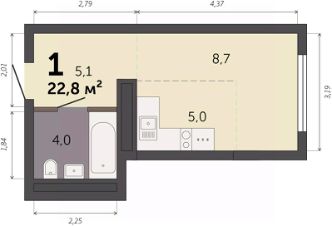 22,8 м²