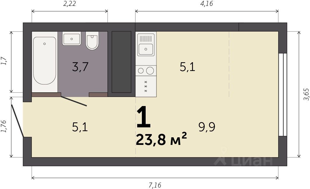 23,8 м²