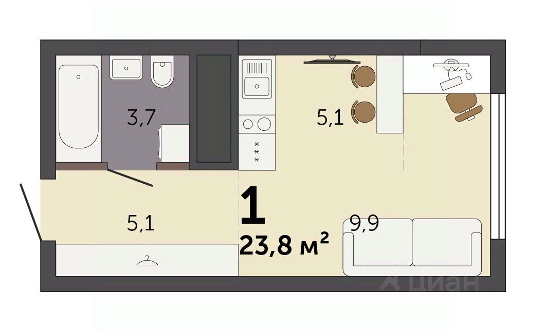 Продаётся студия в строящемся доме (Секция 1.1), срок сдачи: I-кв. 2028, общей площадью 23.8 кв.м., на 21 этаже. Новый жилой комплекс "Парк Культуры" от застройщика "СЗ Новый Дом" расположен по адресу: г. Екатеринбург, Базовый переулок.