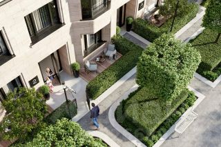 Зоны совместного пользования в стиле современной классики с элементами модерна: мягкие уголки и зоны для ожидания, картины, озеленение в подъездах. Во дворе: городская площадь с фонтаном, пешеходный бульвар, ландшафтный парк, камерные сады.