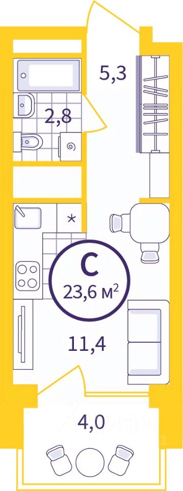Просторная однокомнатная квартира-студия в ЖК "Астон.Сезоны" на 13 этаже. Квартира без отделки, после выдачи ключей можно делать ремонт. Общая площадь: 20.79 кв.м., площадь гостиной 11.4 кв.м., из которых 5 кв.м. выделено под кухонную зону. Все окна выходят на одну сторону. В квартире один балкон, один совмещенный санузел. Высота потолков 2.7 м.