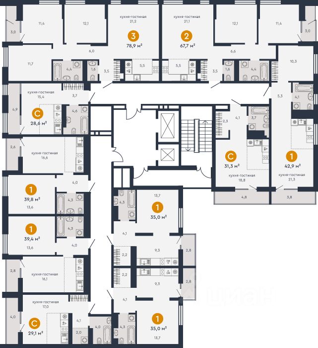 Уровень отделки квартир под чистовую, высота потолков 2,7 метров. На первом этаже дома расположены коммерческие помещения под офисы и магазины.