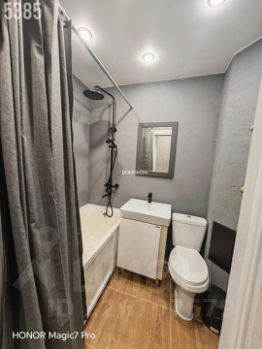 При продаже в квартире остается кухонный гарнитур со встроенной техникой: варочная поверхность, духовой шкаф, вытяжка, мебель в ванной комнате.