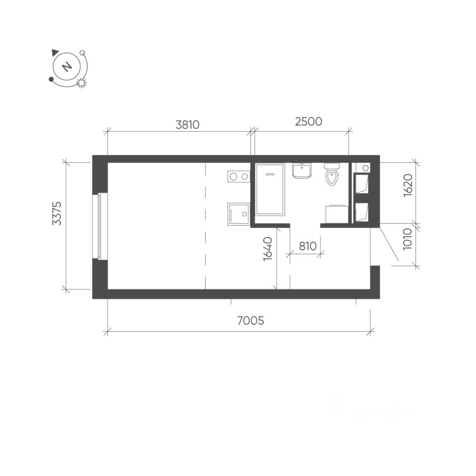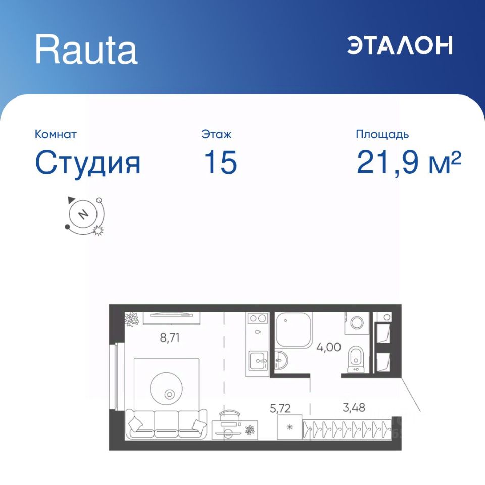 Общая площадь квартиры — 21.91 кв. м, этаж 15 из 24.