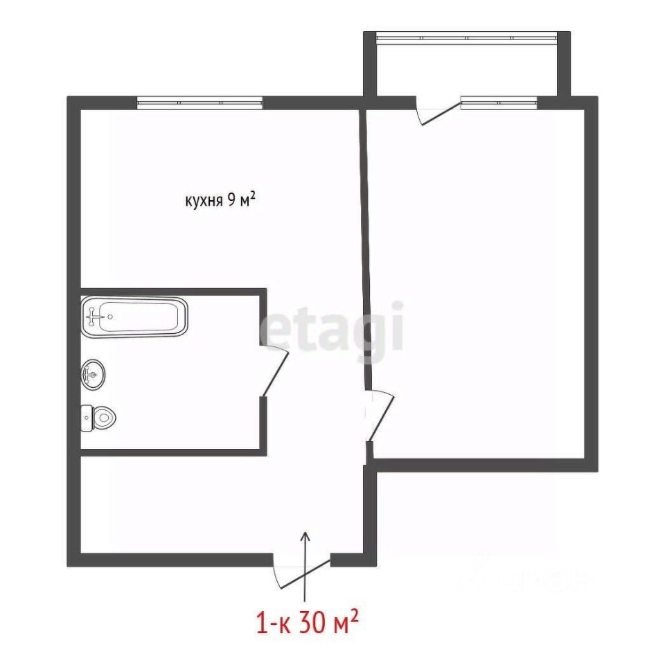 Продается уютная однокомнатная квартира площадь 30 м.кв, кухня 9 м.кв.