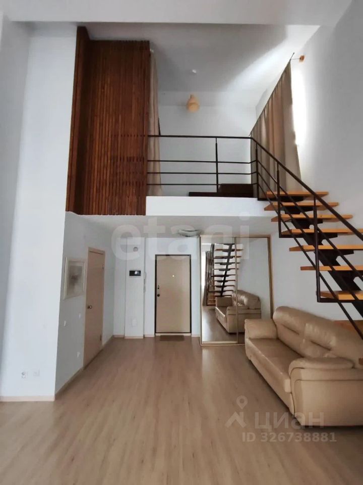 Атмосферная двухъярусная квартира-студия в необычной стилистике. Удобная локация сочетается с комфортом, яркими видовыми характеристиками особенно в тёплое время года и индивидуальной возможностью выхода на террасную площадку.