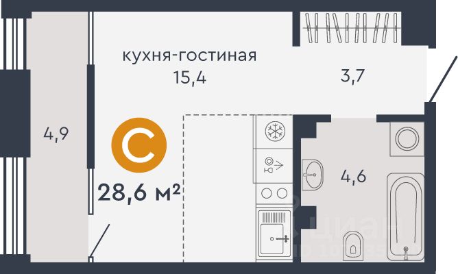 Общая площадь28,6 м²