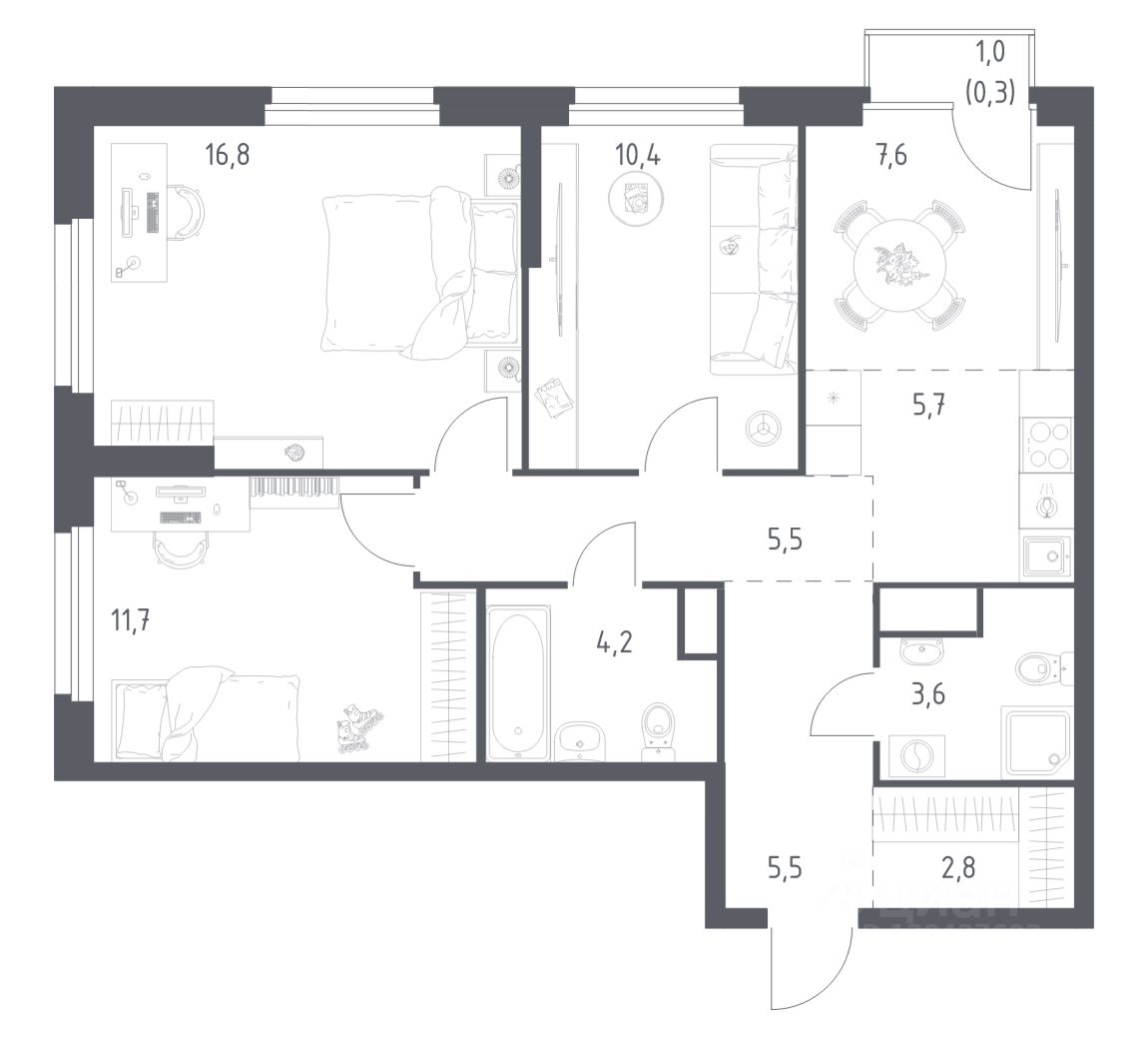 Строим кварталы для жизни с заботой о будущем. Предлагается 3-комнатная квартира комфорт-класса площадью 74.1 кв.м в корпусе 1КВ на 4-м этаже, в жилом комплексе "Квартал Ауруум".