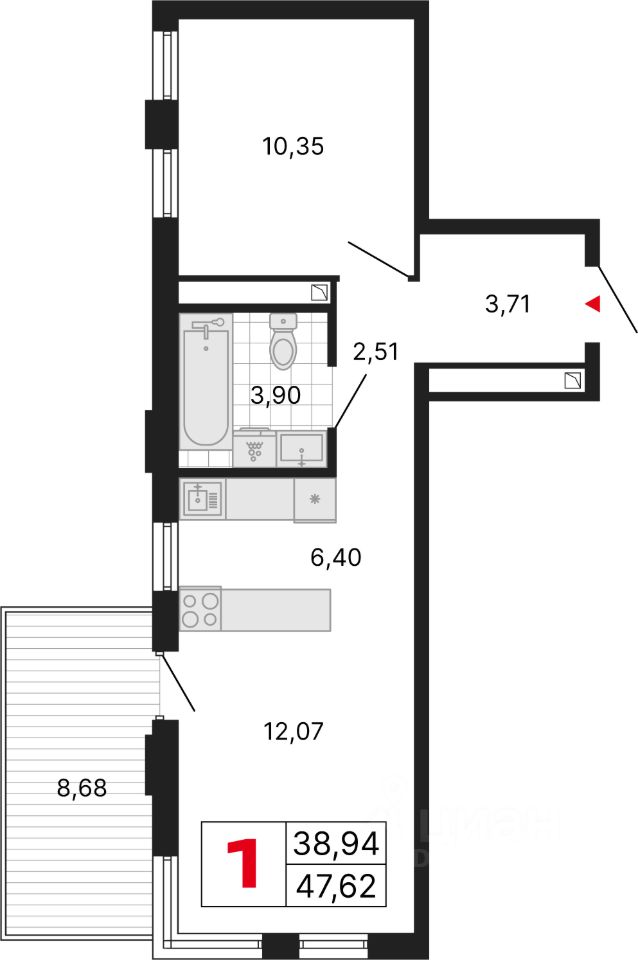 Продаётся 1-комнатная квартира в строящемся доме (Дом 3), срок сдачи: I-кв. 2026, общей площадью 47.62 кв.м., на 1 этаже. Дом на Куйбышева - это часть квартальной застройки, которой занимаются два девелопера: мы (команда BAZA Development) и компания Астон. Силами BAZA ведется строительство двух домов. Первый из них предполагает наличие 25-ти этажей качественной, функциональной застройки и умного благоустройства.