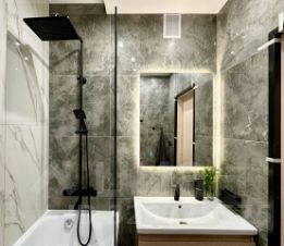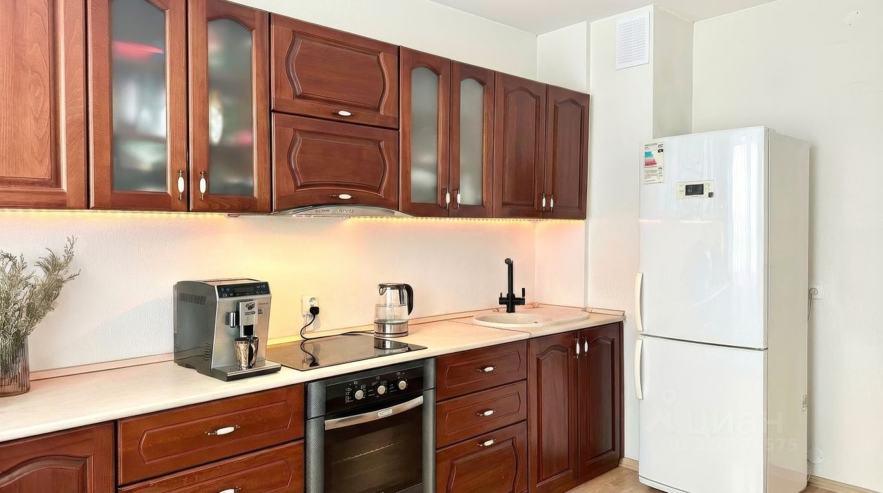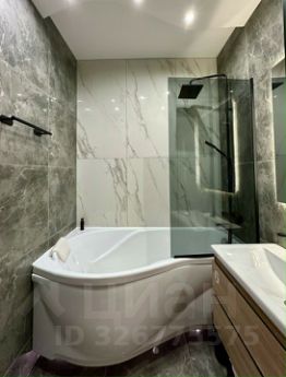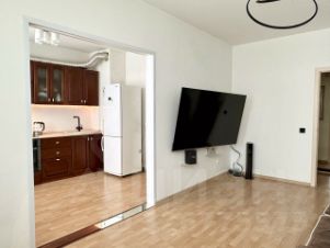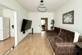 У квартиры просторная и изолированная планировка: кухня плавно переходит в гостиную, кабинет (либо детская), большая хозяйская спальня. В коридоре установлены системы хранения, также есть лоджия и кладовая. Санузел после капитального ремонта, имеет современный интерьер с разными сценариями освещения.