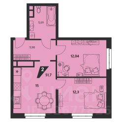 Продается двухкомнатная квартира 51,7 кв.м. на 11 этаже, в новом жилом квартале "На Шефской"