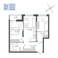 Общая площадь53,7 м²