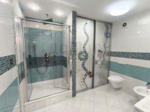 * увеличенный сан/узел с швейцарской душевой кабиной и нишей для стиральной и сушильной машины с бойлером,