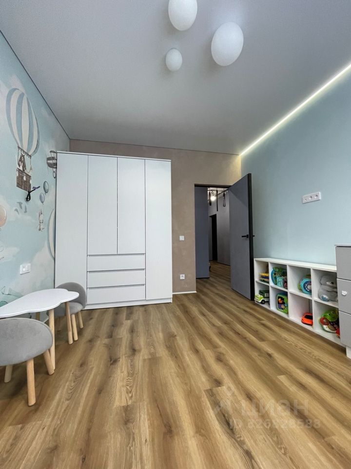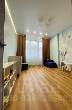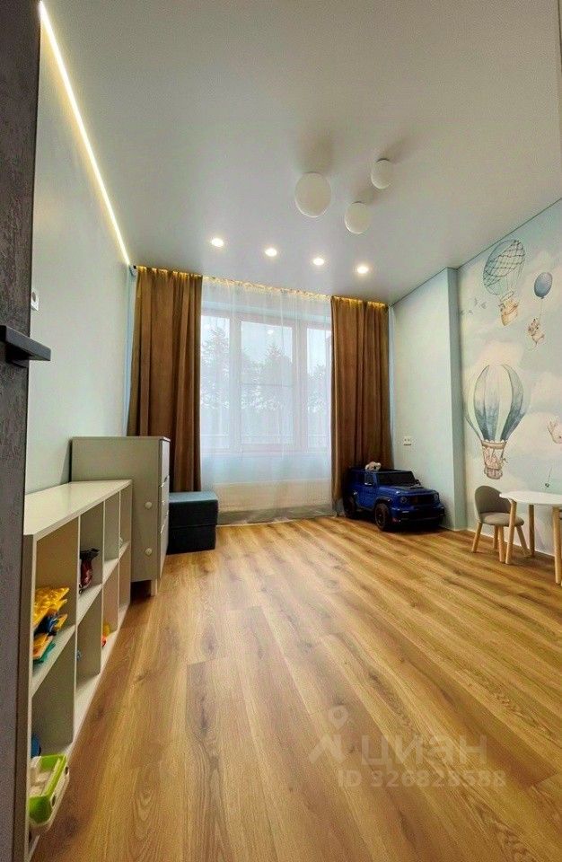 В квартире сделан качественный ремонт: стены - выравнены, декоративная штукатурка; пол - выравнивали, переделывали стяжку, кварц -винил. Сан узел - керамогранит. По всей квартире заменена электропроводка. В детской комнате - натяжной потолок с теневым профилем, а также натяжной потолок в гардеробной.
