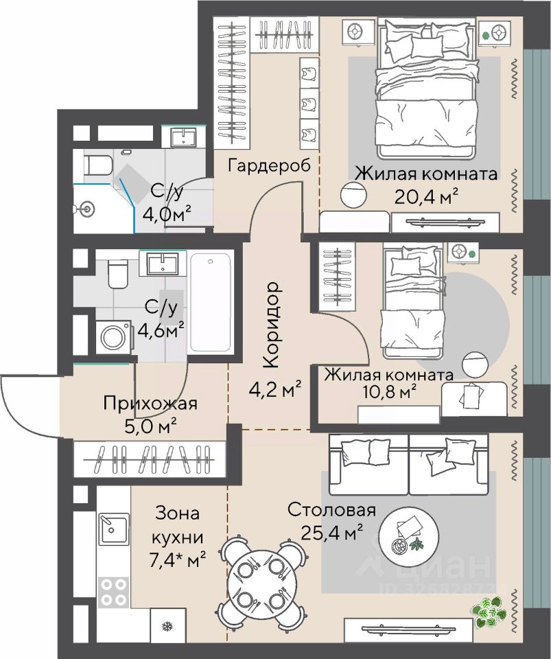 Общая площадь74,4 м²