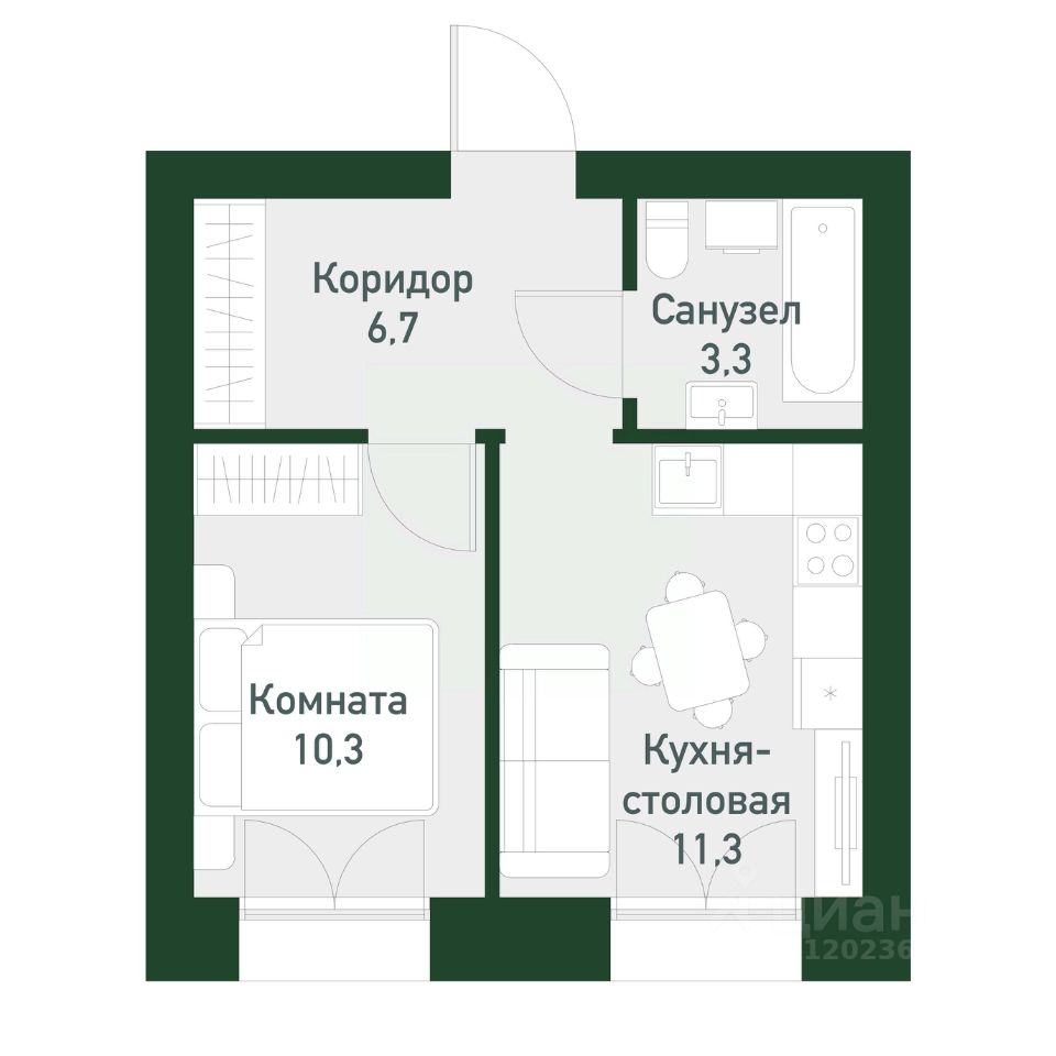 Общая площадь32,58 м²