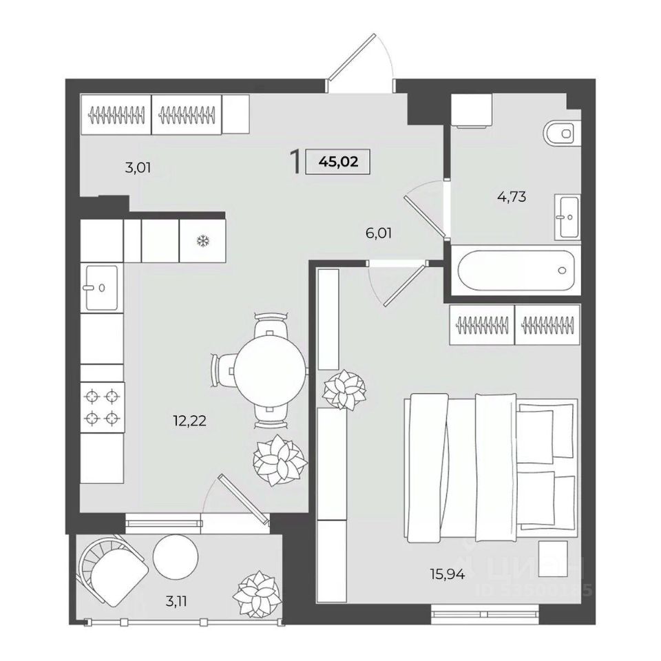 45,02 м²