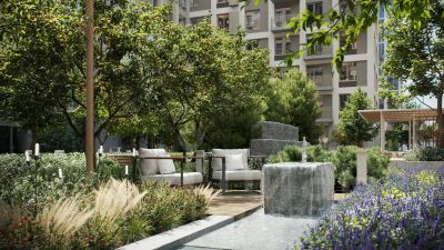 Благоустройство жилого комплекса это синтез искусства и природы. Поющие музыкальные инсталляции и поэтический променад. Оркестр растений: сирень, гортензии и яблони, чья цветущая палитра сменяется в течение года.