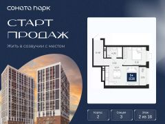 Продается однокомнатная квартира с предчистовой отделкой в ЖК "Соната Парк" на 2 этаже. Общая площадь: 45.66 кв.м. Высота потолков 2.72 м.