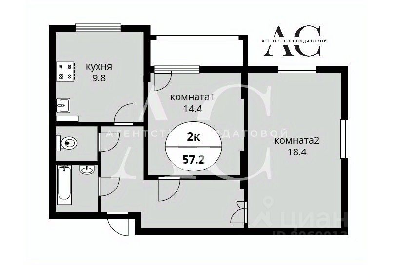 57,2 м²
