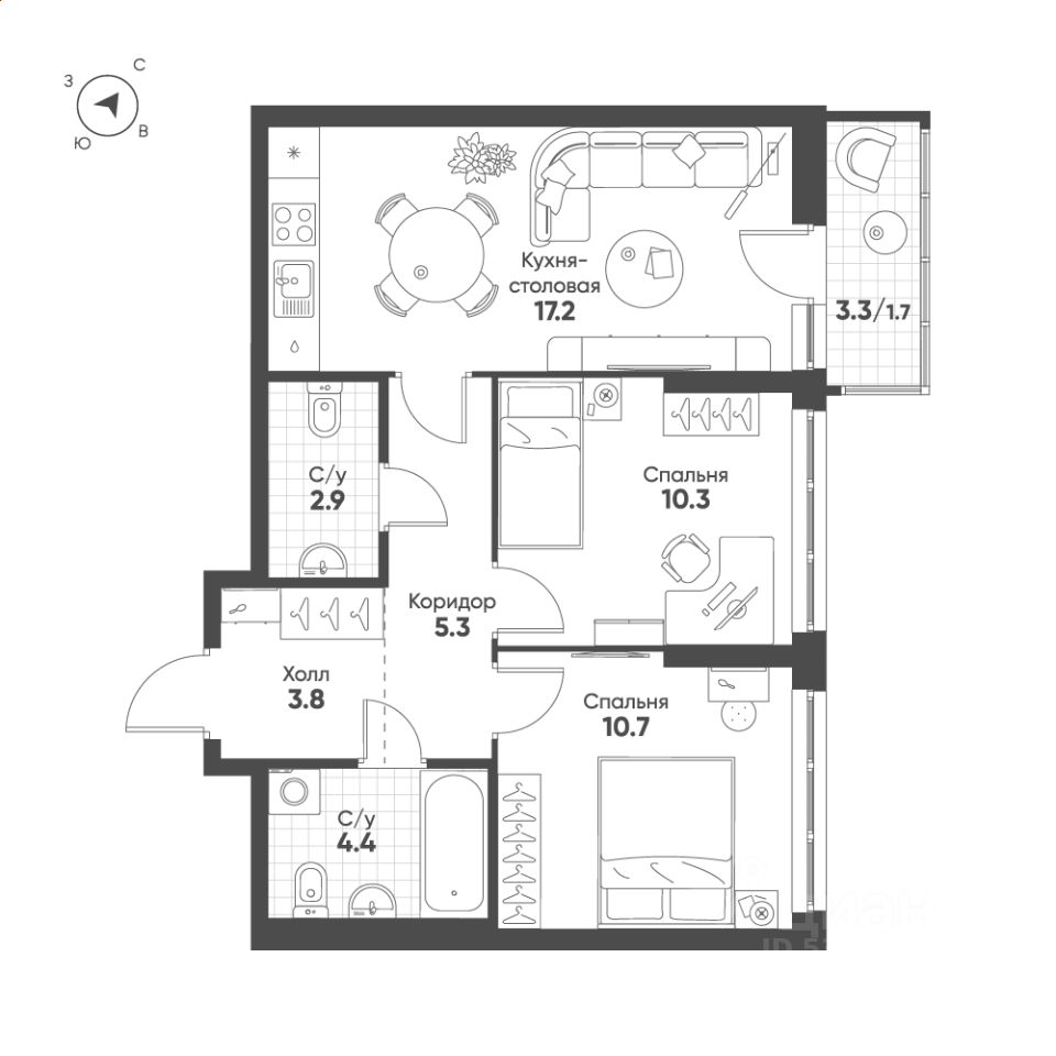 Продаётся 2-комнатная квартира в строящемся доме (Дом 6.4), срок сдачи: IV-кв. 2026, общей площадью 56.3 кв.м., на 2 этаже. Новый жилой комплекс "Жилой район "Солнечный"" от застройщика "ГК Эталон" расположен по адресу: г. Екатеринбург, Золотистый бульвар.
