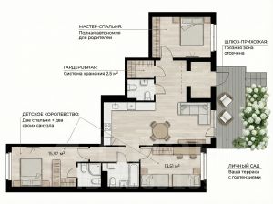 ОБЪЕМ: Потолки 3.0 метра (+30 см к стандарту). РОДИТЕЛЬСКОЕ КРЫЛО: Мастер-спальня с гардеробной и своим санузлом. Отделена от соседей двойной стеной (полная тишина).