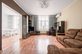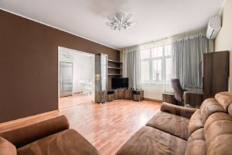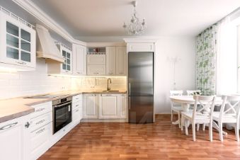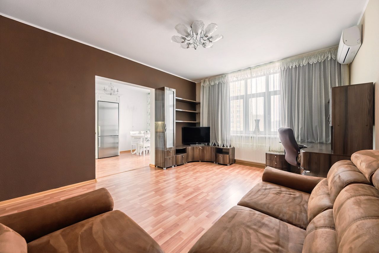 Квартира освобождена. Покупателю остается кухонный гарнитур с встроенной бытовой техникой, мебель в гостиной, мощный кондиционер, спальный гарнитур, меблирование и техническое оснащение санузлов.