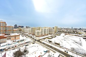 Квартира видовая, на 16 этаже, окна выходят на центр города и на запад (на французскую гимназию). Можно смотреть салют, не выходя на улицу! Нет окон, выходящих на ул.8 Марта.
