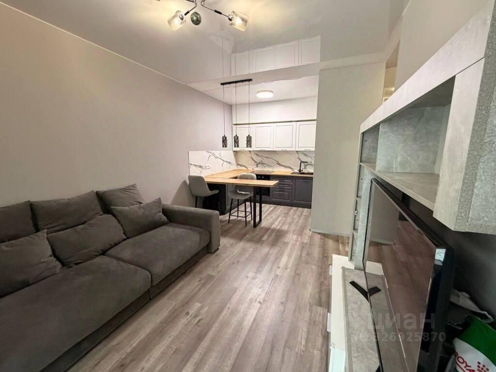 Квартира готова к проживанию - сделан стильный, качественный ремонт. Всё выглядит свежо и аккуратно. Высокие потолки и большие окна наполняют комнату светом.