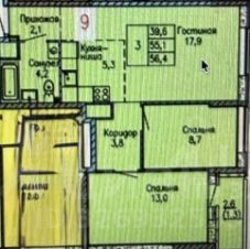 * Функциональная планировка: кухня-гостиная 23,2 кв.м., детская комната 9,0 кв.м., спальня родителей 13 кв.м., с выходом на лоджию 2,6 кв.м., совмещенный санузел 4,2 кв.м.