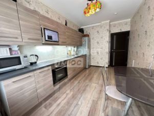 Кухня 12.2 м² с современным кухонным гарнитуром и встроенной техникой остаются новым владельцам. Также остаются: шкафы купе и двуспальная кровать с двумя тумбами.