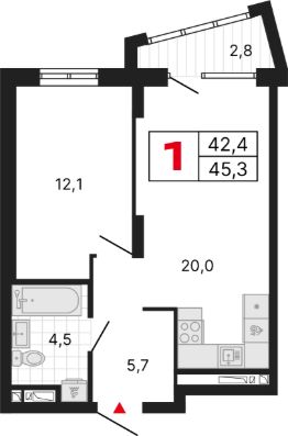 Продаётся квартира в Квартал-парк "Каменные палатки". 4 очередь, 13 секция. 1-комнатная квартира, 45,36 м², 116. Стоимость указана с учетом отделки: На выбор: White Box, Чистовая + санузел White Box, Чистовая + санузел в финишной отделке.